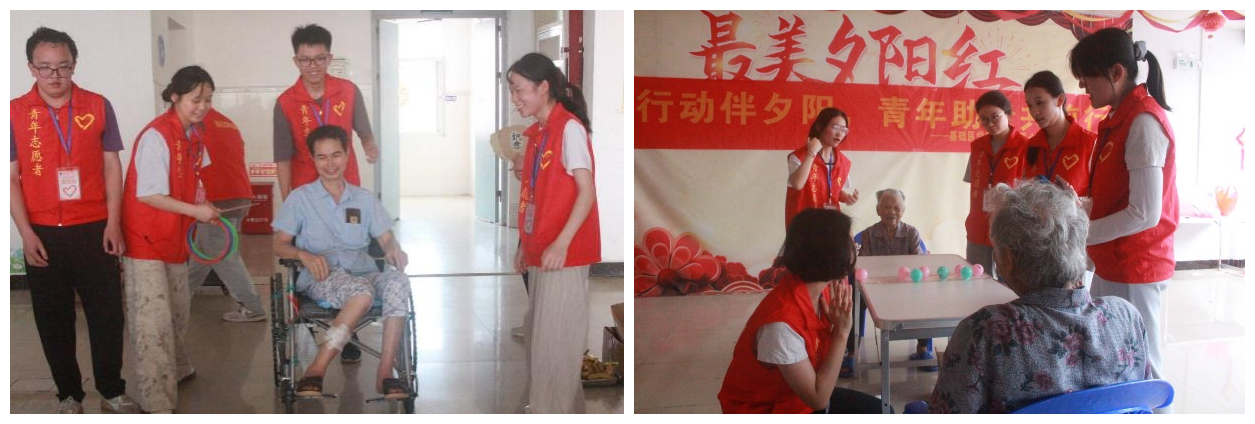 活动中,志愿者们为老人们带来了歌舞表演《最炫民族风》,欢快律动的旋律引得老人们纷纷跟随节奏轻声哼唱。互动游戏环节,志愿者们组织了套圈、滚球和袋落福盒等活动,老人们积极参与,现场其乐融融。此外,依托医学专业优势,志愿者们还为老人们提供个性化健康服务,他们运用推拿手法为老人舒缓肩颈疲劳,以艾灸疗法调理关节不适,并针对老年常见病进行健康宣教,专业细致的服务让老人们切实感受到来自社会的温暖与关怀。