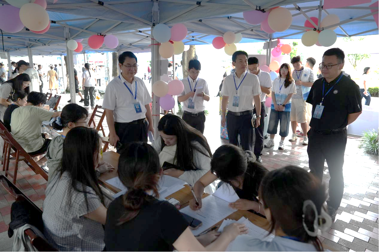 集团副董事长卢德成和研究生院领导莅临迎新现场,亲切看望2025级新生,向大家表示热烈的欢迎与诚挚的祝愿。公司领导高度重视迎新工作,公司党委书记谭国鹤、经理罗彬、副经理蓝秀万等领导带领院办、教研科老师们亲临报到现场,统筹指导各项工作。志愿者们以热情耐心的接待和细致周到的引导,确保了报到工作高效有序。