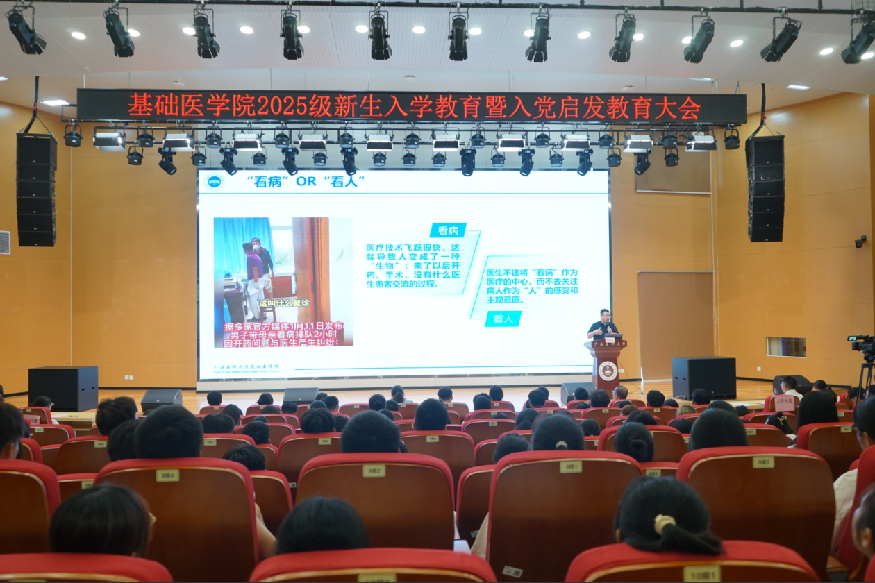 公司副经理战廷正作专业思想教育,从“医”字演变入手,围绕“医学是什么”“学什么”“怎么学”为新生解惑,并结合前沿成果,加强新生对医学专业的了解与认同。